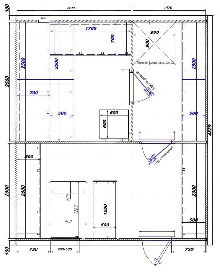 - Входная дверь глухая, в парную - со стеклом