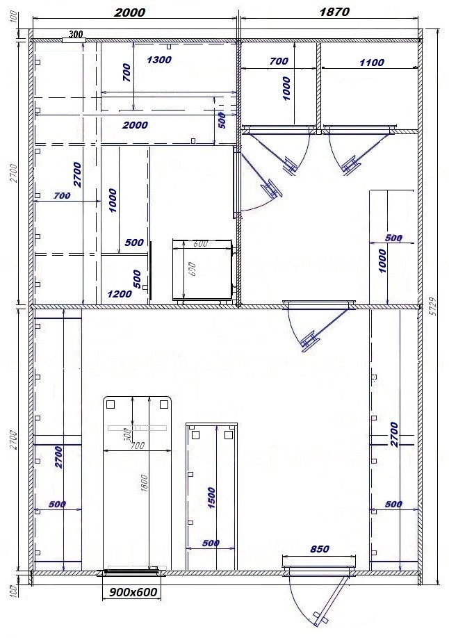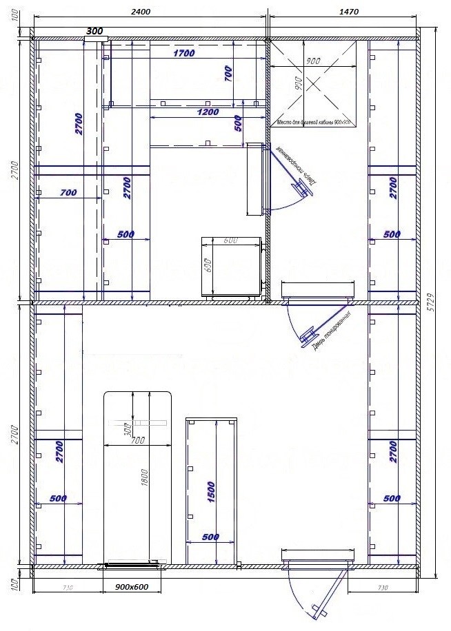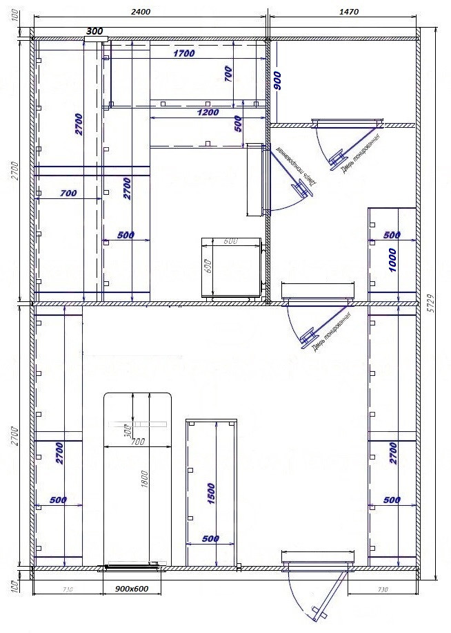 - Входная дверь глухая, в парную - со стеклом