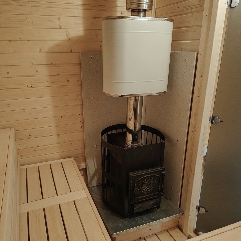 Топка внутри парной. Классика жанра: вы подкидываете дрова, не отрываясь от процедур, и наблюдаете за игрой огня через стекло печи прямо в парилке.