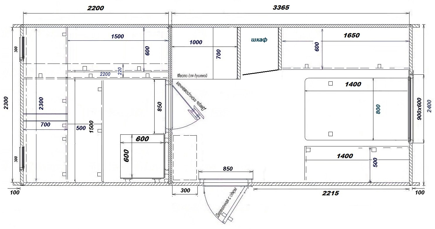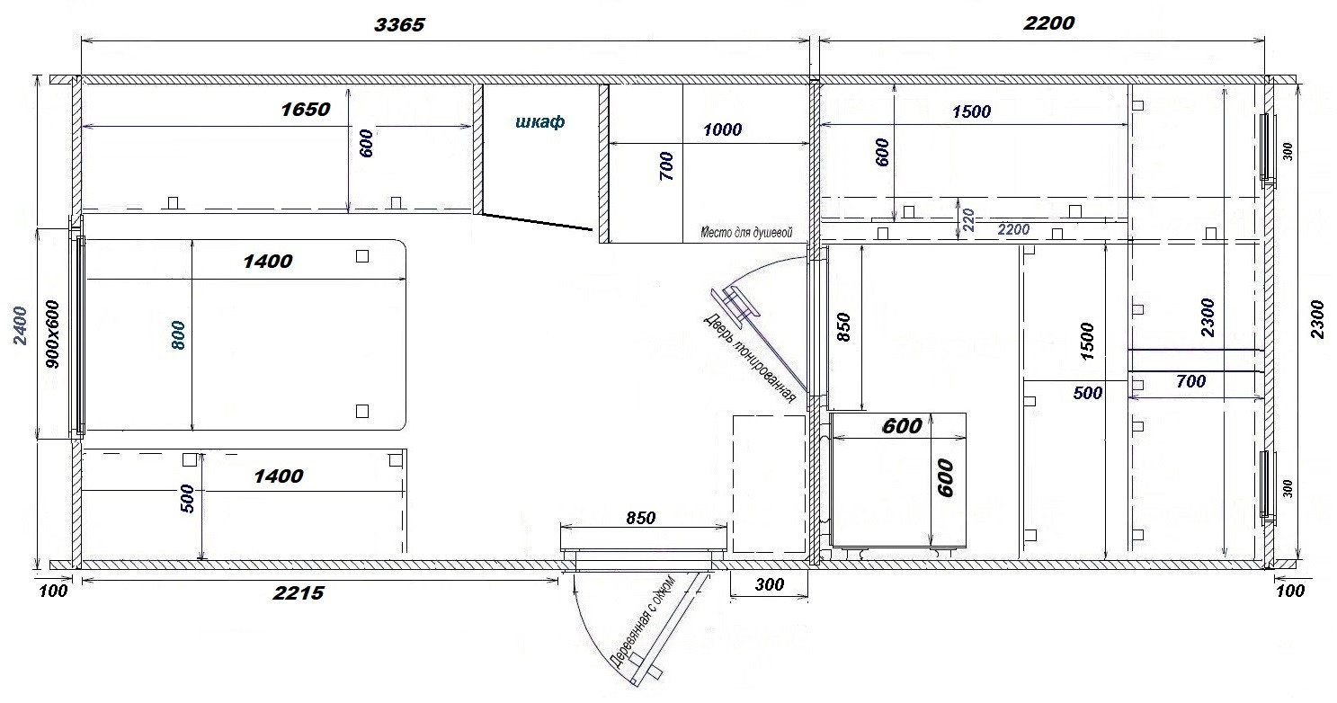 - Мебель в комнате отдыха: стол и лавки